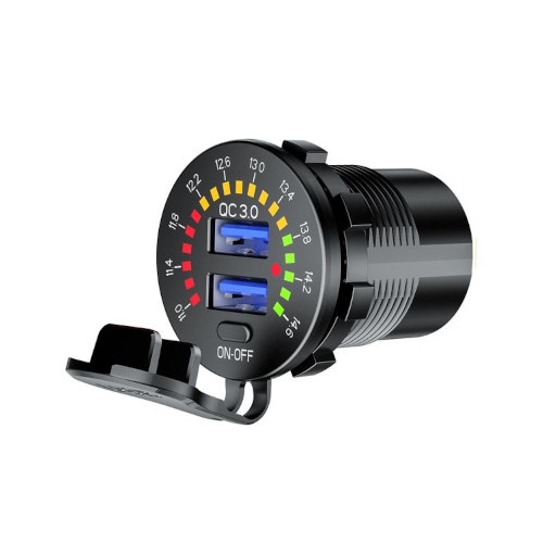Mootorratta pesa kahe QC3.0 USB-pordiga on äärmiselt mugav lahendus mootorrattaga sõitmiseks. Brändi eXtremestyle® laadijal on Quick Charge 3.0 tehnoloogia – kõige populaarsem ja levinum telefonide kiirlaadimissüsteem. Quick Charge on täiesti ohutu nii elektroonikaseadmetele kui ka nende aku kasutuseale, mida kõrgem on laadimistase, seda aeglasemalt aku laeb. Pinge indikaator Laadija on varustatud pinge indikaatoriga. Kui mootor töötab , kuvatakse aku laadimispinge ja kui mootor ei tööta, kuvatakse aku pinget . Mootorratta pesa 2 x USB QC 3.0 - eXtremestyle® - 36 W - MUS34 Mootorratta pesa 2 x USB QC 3.0 - eXtremestyle® - 36 W - MUS34 Spetsifikatsioon Kiirlaadimine: 3.0 (ühildub 2.0 ja 1.0-ga) Sisend: DC 12 - 24 V Väljund: 2xUSB QC3.0 - 36W 5 V - 3 A | 9 V - 2 A | 12 V - 1,5 A Kaal: 55 g